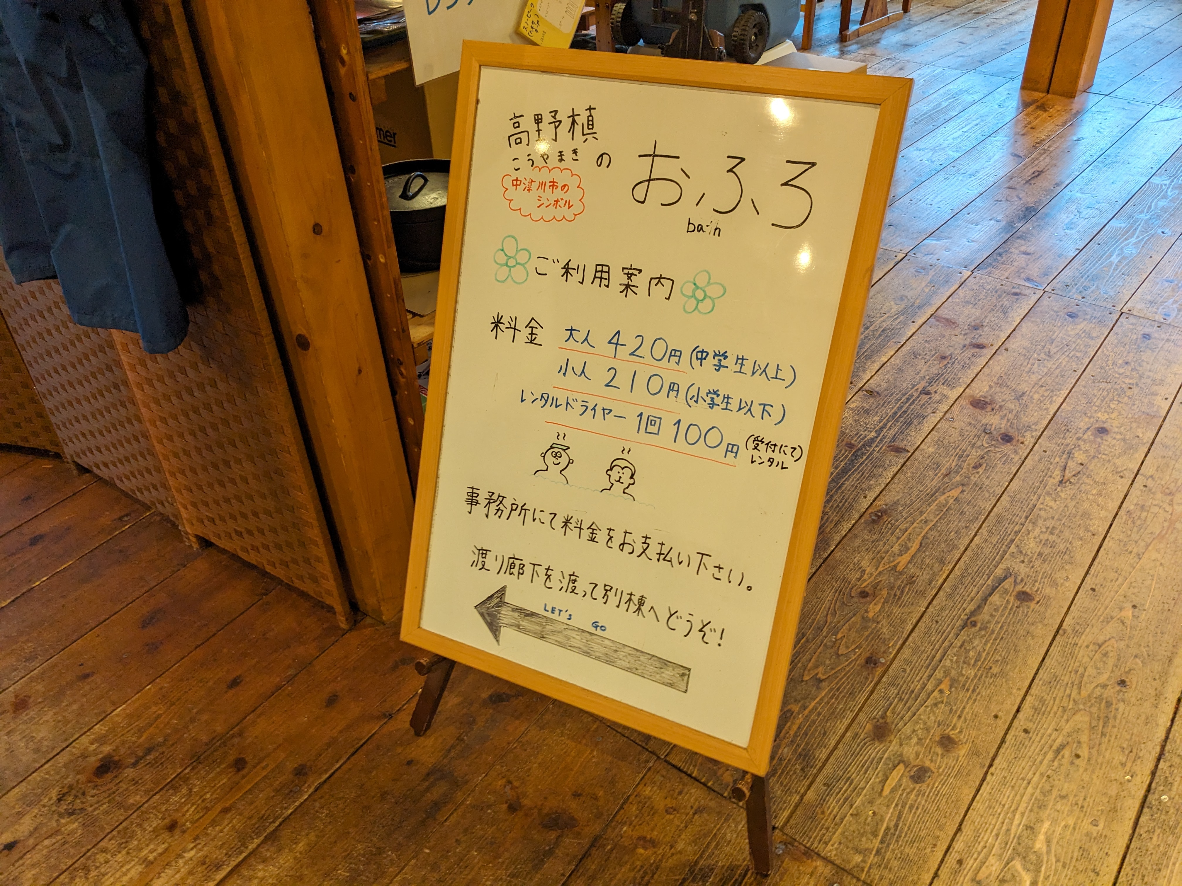 | お風呂2名分 | ¥840 | 大人(高校生以上)420円 小人(中学生以下)210円 |